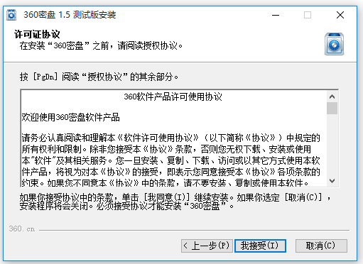 在安裝“360密盤”之前,請閱讀授權(quán)協(xié)議。