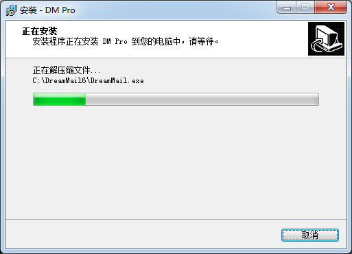 安裝程序正在安裝DMPro到您的電腦中,請等待。