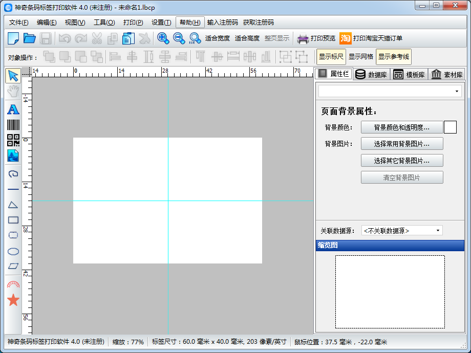 神奇條碼標(biāo)簽打印軟件是一款非常強(qiáng)大的支持條碼打印,標(biāo)簽打印的軟件!神奇條碼標(biāo)簽打印軟件具備條碼生成、二維碼生成、多種圖形、矢量圖標(biāo)、行業(yè)標(biāo)志等,內(nèi)置652個(gè)矢量圖標(biāo)隨意選擇,讓用戶將標(biāo)簽條碼內(nèi)容輕松打印。支持自定義條碼內(nèi)容,同時(shí)可以將淘寶訂單列表批量生成條碼標(biāo)簽,是一款,專業(yè)實(shí)用的條碼標(biāo)簽制作打印軟件。已破解,自帶注冊(cè)碼,歡迎有需要的用戶前來獲?。?br />