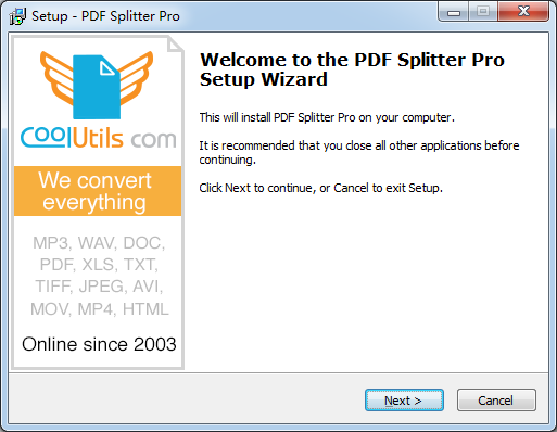 2.Welcome to the PDF Splitter Prosetup Wizard