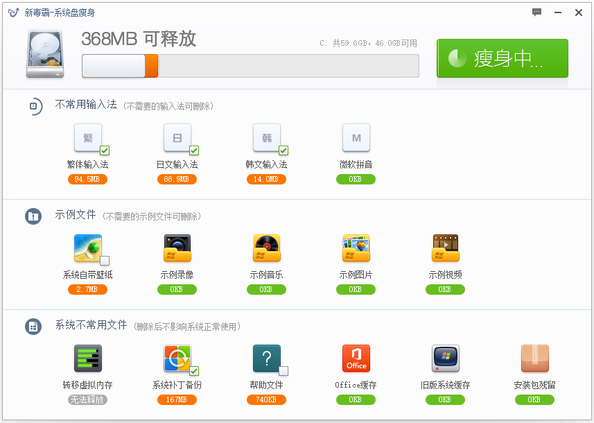 4.智能為你的系統(tǒng)盤瘦身,騰出更多的磁盤空間。