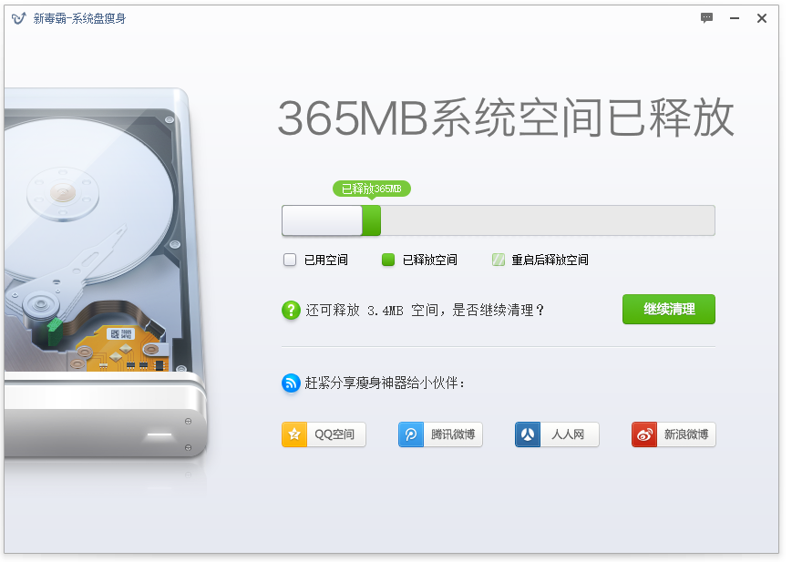 瘦身成功后還可以點(diǎn)擊【繼續(xù)清理】。