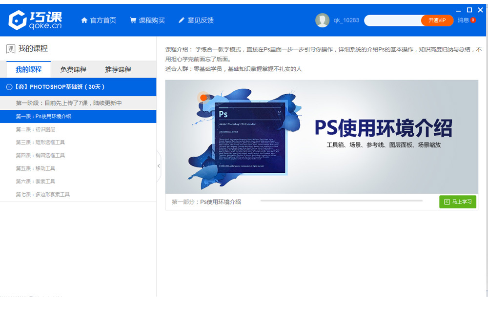 以上便是KK下載小編給大家分享介紹的巧課PS學習平臺,歡迎有需要的用戶前來獲取!