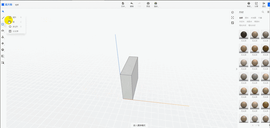 1.在左側(cè)工具欄中用矩形和拉伸工具做出輔助墻面的效果,這個(gè)墻的用處會(huì)在下面的步驟說明,可以在上方設(shè)置數(shù)值調(diào)整大小和高度
