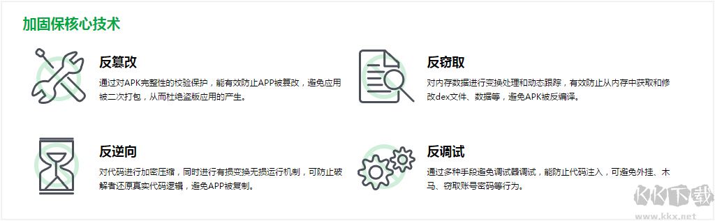 2.應(yīng)用零風(fēng)險:防止應(yīng)用被二次打包、惡意篡改、內(nèi)存截取等風(fēng)險