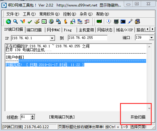 3、點(diǎn)擊開始掃描即可對(duì)您的端口進(jìn)行掃描,不需要掃描,點(diǎn)擊停止掃描即可;