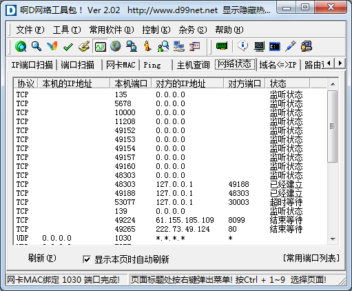 6. 網(wǎng)絡(luò)狀態(tài)查看 [想知道自己機(jī)子打開了什么端口嗎?本程序可幫上你的忙!]
