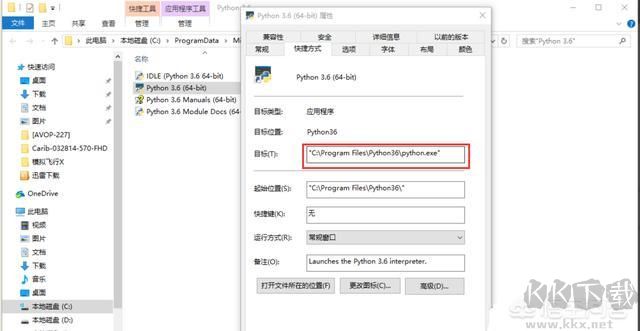 如圖中紅框所示“目標(biāo)”,就是我電腦中的安裝路徑——C:\Program Files\Python36\python.exe