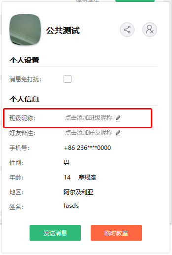 教師和班主任可以在班級詳情--班級成員--成員列表頁面--進入學生個人詳情頁 修改學生的班級昵稱