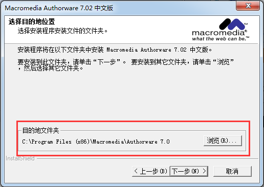 3.默認軟件安裝位置,直接點擊下一步,默認:C:\Progr am Files (x86)\Macromedia\Authorware 7.0