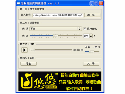 2.支持12個半音范圍內(nèi)的升降調(diào),支持0.5到2倍變速處理。