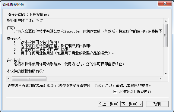 勾選“我接受以上協(xié)議內(nèi)容”,點(diǎn)擊下一步
