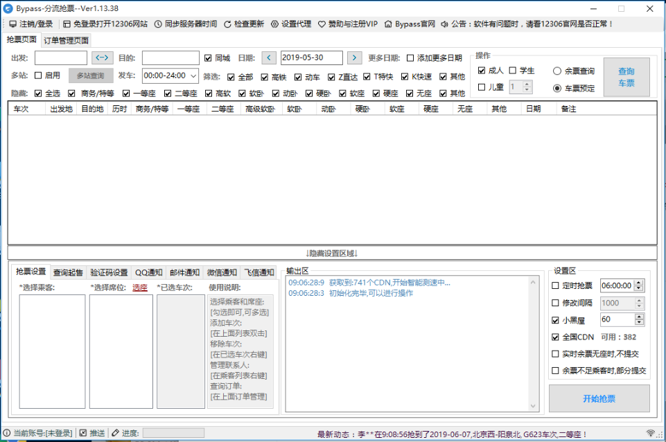 打開12306Bypass分流搶票軟件,等待聯(lián)網(wǎng)檢測(cè),