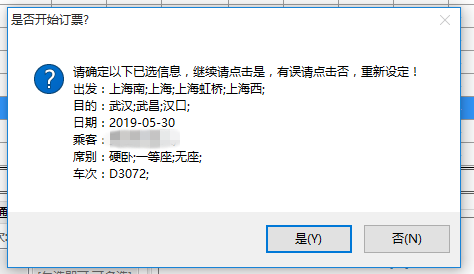 點(diǎn)擊【是】,即可開始訂票,你就不用守著電腦了。