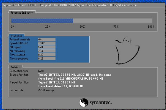 5.數(shù)據(jù)還原之后,電腦會(huì)自動(dòng)重啟,之后進(jìn)入xp系統(tǒng)安裝界面;