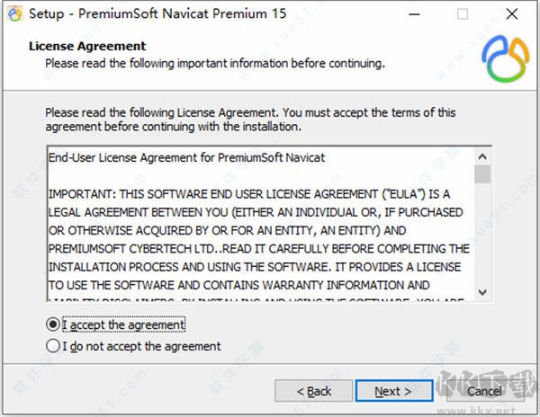 2、用戶許可協(xié)議界面勾選上上面的I accept the agreement我接受這一項(xiàng)。
