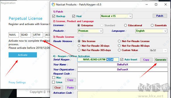 12、如下圖,在注冊(cè)機(jī)上點(diǎn)擊Generate生成注冊(cè)碼,復(fù)制到Navicat Premium軟件上激活。
