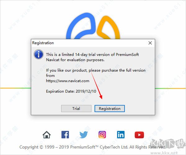 11、隨后運(yùn)行Navicat Premium軟件,點(diǎn)擊點(diǎn)擊Registration進(jìn)行注冊(cè)。