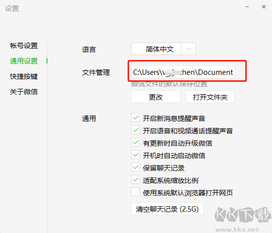 1、登錄PC微信,從設(shè)置 – 通用設(shè)置中 找到對應(yīng)路徑,默認(rèn)是C:\我的文檔\WeChat Files\;(注:此指引適用于2.6.3版本以上的PC微信)