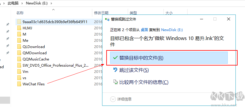 4、用遷移過來的WeChat files 覆蓋至新電腦B的WeChat Files. 選擇替換目標(biāo)中的文件;