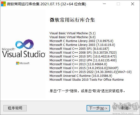隨著時代的進步,XP系統(tǒng)已經(jīng)不再被官方支持,XP時代遺留下來的VB運行庫,理應該不被再使用,所以本站剔除了一些舊版運行庫,只保留C++運行庫。另外office2010運行庫,不需要運行庫office2010版本照樣能使用,所以同樣移除。