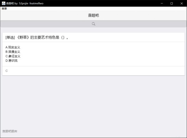 查題吧是一款由吾愛大神原創(chuàng)制作分享的一款免費的問答庫免費查題工具,只需輸入題目就會顯示出來相同或相似的題目了,類似上學吧考試資料網(wǎng),它可以幫助用戶們?nèi)ゲ樵兿嚓P題目的答案,考證題資源齊全,支持網(wǎng)課,幫助你快速搜題答題!查題吧由易語言程序編寫使用前請關閉360等軟件不然會誤報哦。