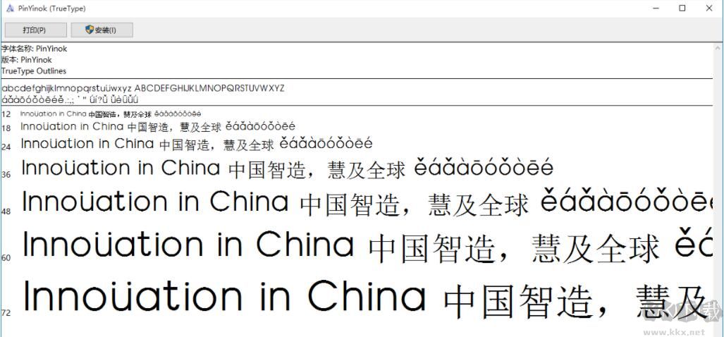 漢語拼音字體(Pinyinok)是一款經(jīng)常會使用于小學(xué)語文、閱讀讀物、練習(xí)手冊上使用的拼音注音字體,只需要數(shù)字鍵就會出現(xiàn)字母帶音標(biāo),是一款非常實用的字體。