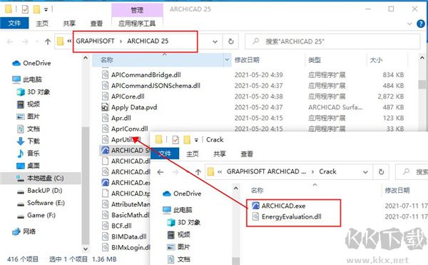 7、將本站提供的Crack文件夾中的內(nèi)容全部復(fù)制到archicad25的根目錄下,并選擇替換;