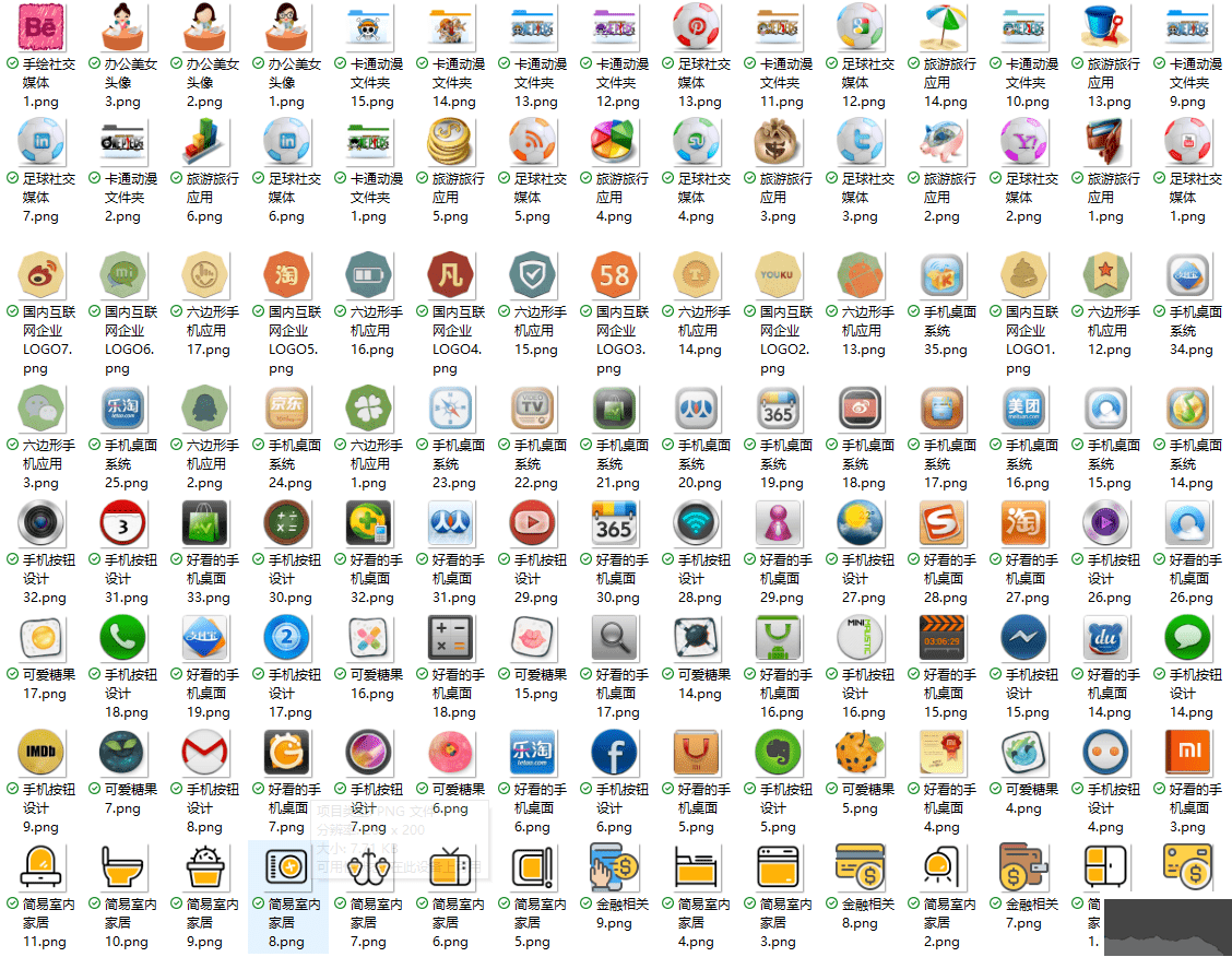 PNG圖片是一種采用無損壓縮算法的位圖格式,其設(shè)計目的是試圖替代GIF和TIFF文件格式,同時增加一些GIF文件格式所不具備的特性,PNG圖標(biāo)也是大家經(jīng)常會用到的,比如網(wǎng)站,設(shè)計等等,PNG透明屬性是很多用戶所需要的,這里給大家分享PNG圖標(biāo)大全(9W+打包)下載,款款精品,足夠大家使用了!再也不用去網(wǎng)上購買了!