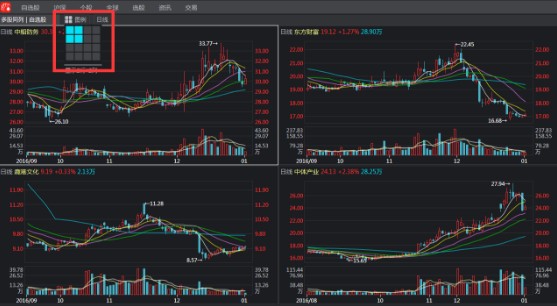 點(diǎn)擊圖中紅色方框所示的區(qū)域,可以選擇一次同列多少只股票,目前只支持4、6、9三個(gè)數(shù)量的同列,后續(xù)會(huì)增加更多排列組合。