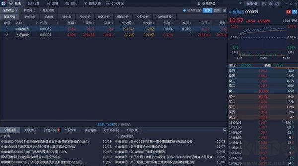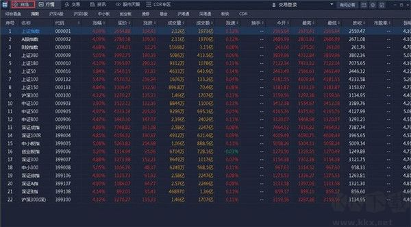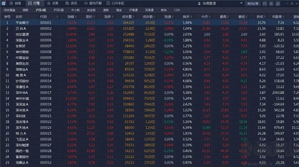 接下來我們就可以試一下怎么將股票添加到自選股中。點擊軟件主界面頂部功能欄中的行情,打開骨片行情頁面。我們可以查看A股、B股、中小板、創(chuàng)業(yè)板等板塊的股票行情;