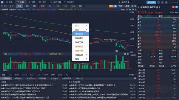 在股票詳情頁面中的空白位置點擊鼠標(biāo)右鍵,展開右鍵菜單。點擊右鍵菜單中的而添加自選,就可以將該股票添加到自選股列表中了;