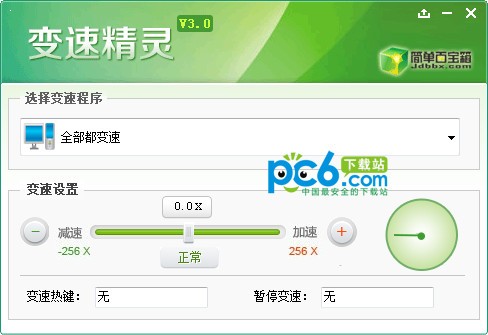 變速精靈是一款可以讓操作系統(tǒng)的中軟件無級(jí)變速的軟件,最高可加速256倍,微調(diào)精度達(dá)到0.001位。采用純軟件方式變速,決不會(huì)損害電腦硬件,通過拖動(dòng)滑塊來進(jìn)行自由變速!為方便大家使用KK為大家分享的變速精靈已破解無需VIP也可免費(fèi)使用!