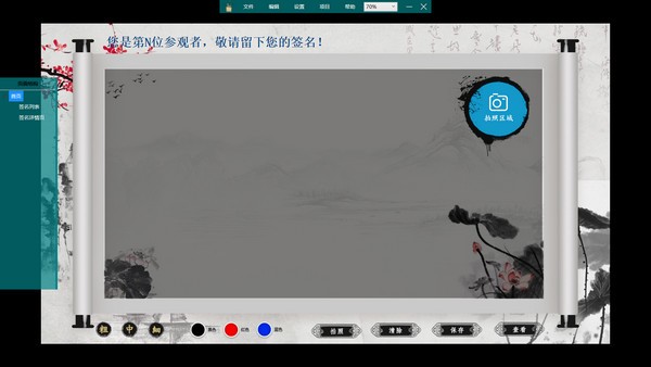 觸屏精靈電子簽名軟件是一款適適用于電子大屏幕可簽名的簽名展示設(shè)備中使用的軟件!通過這款觸屏精靈電子簽名軟件能用于展館展廳參觀者簽名留影,用戶直接在電子屏幕上即可完成簽名,拍照,打印,掃碼帶走等操作。