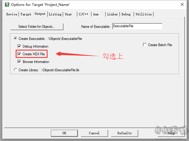 A.Keil生成hex配置