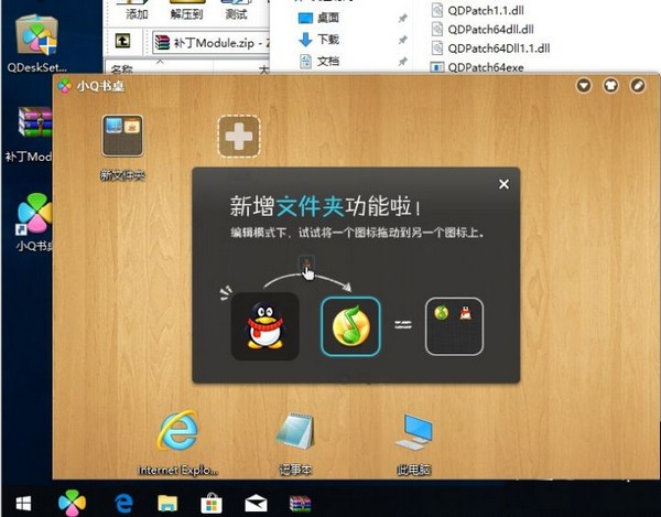 添加:將桌面上的程序快捷方式或文件直接拖進(jìn)小Q書桌操作界面;