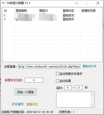 T4微信計數(shù)器是一款非常不錯的微信計數(shù)統(tǒng)計軟件,該工具采用的是本地記錄和遠程分離的設計,能夠幫助我們添加微信后可以看到多個ID的記錄,并且還具備了自動同意好友請求和自動回復的功能!