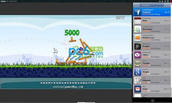 iPadian是一款非常不錯的IOS蘋果系統(tǒng)模擬器,讓你的電腦可以快速變成ipad,此時就可以在電腦中直接玩ipad的游戲運行ipad中的程序了! 桌面壁紙隨便替換 占用內(nèi)存,CPU極少!全部流暢! 支持WiFi無限上網(wǎng)?。ㄐ柽B接到無線路由) 體積為50MB,下載解壓后先安裝AIR,然后直接進IPAD文件夾雙擊打開iPadian.exe即可進入IOS系統(tǒng)! 推薦這個游戲,在蘋果商城安裝的,幾秒的事情,畫面全3D,中文版,很震驚啊!