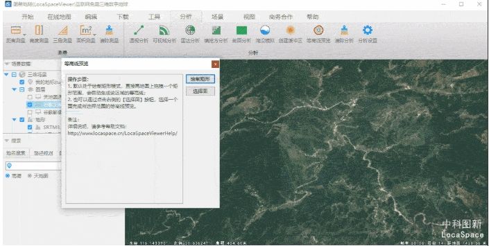 LSV集成了標注、繪制線、面;距離測量、高度測量、三角測量、面積測量以及多種類型三維模型空間分析,包括通視分析、可視域分析、雷達分析、填挖方分析、剖面分析和淹沒分析、等高線預覽等功能應有盡有 功能太多了,不放很多圖了,需要的自己下載試試就知道