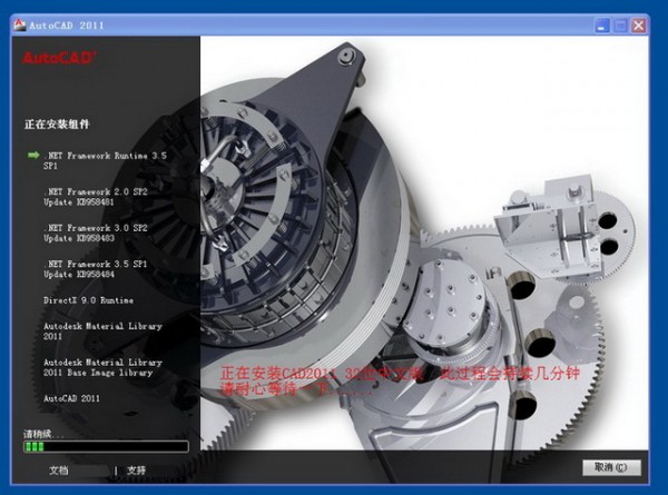正在安裝CAD2011此過程會持續(xù)幾分鐘,見上圖;