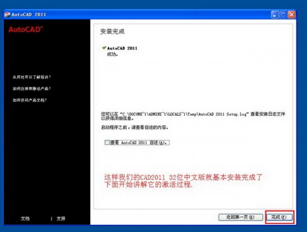點擊“完成” 這樣我們CAD2011完成安裝;