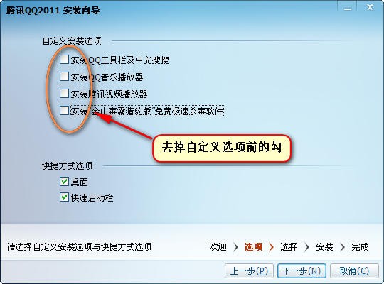 方法如圖:將不喜歡的產品,勾掉,小編我是只裝QQ的,其它的垃圾:),個人愛好。不是罵騰訊!