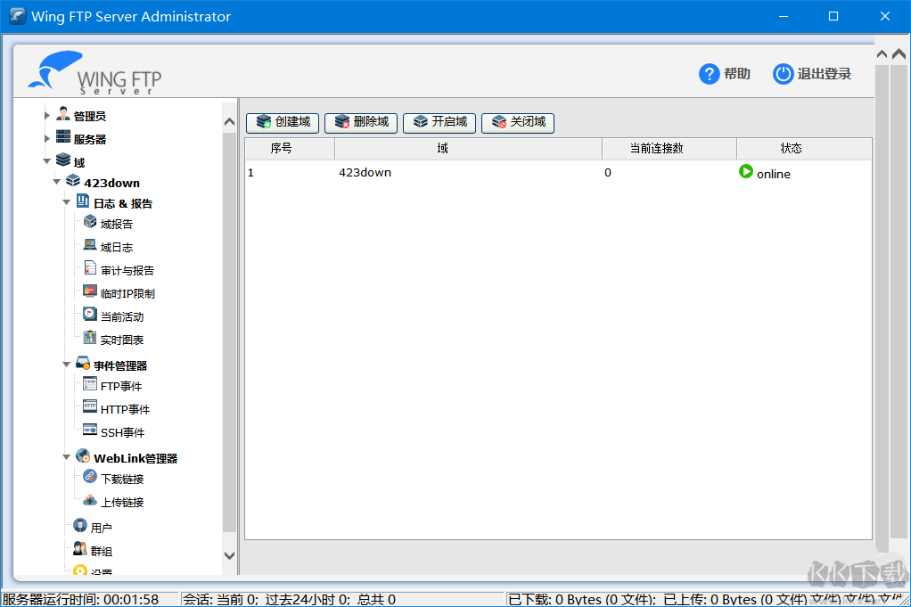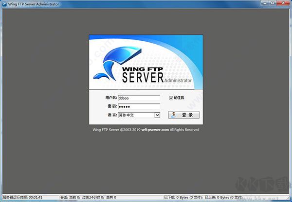 13、接下來運行軟件,輸入安裝過程中設置的管理員賬戶,并登陸即可無限制永久免費使用Wing FTP Server6.0.7了。