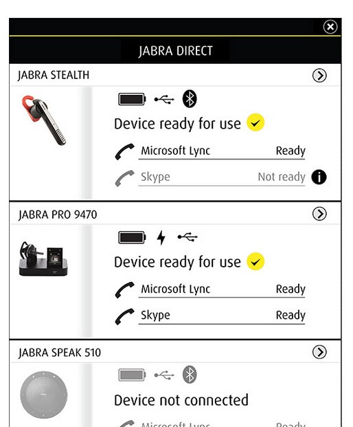 Jabra Direct 有一個(gè)用戶(hù)友好的控制面板,可通過(guò) Windows 通知區(qū)的 Jabra Direct J 圖標(biāo)輕松訪(fǎng)問(wèn)。 在控制面板中,您將看到耳麥和軟電話(huà)的連接狀態(tài),以便您在每次通話(huà)時(shí)知道一切已經(jīng)準(zhǔn)備就緒。