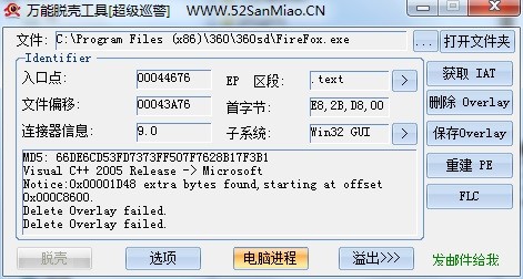 可掃描應(yīng)用程序是否包含附件數(shù)據(jù),并提供了附加數(shù)據(jù)詳細(xì)的起始位置和大小,可以用Del Overlay按鈕和Save Overlay按鈕進(jìn)行相應(yīng)的處理。