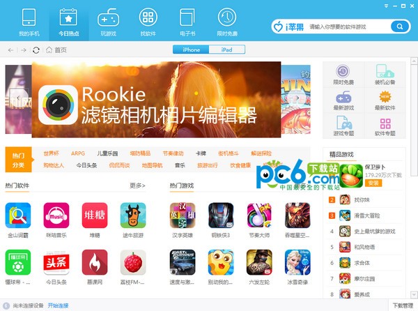 i蘋果助手是針對蘋果手機(jī)用戶推出的一款手機(jī)管理工具,軟件可以免越獄幫助用戶免費(fèi)下載和安裝正版蘋果應(yīng)用及游戲。i蘋果助手讓用戶無需花費(fèi)一分錢,就可以免費(fèi)使用任意蘋果手機(jī)應(yīng)用,游玩蘋果手機(jī)游戲,有需要的朋友趕緊下載使用吧!