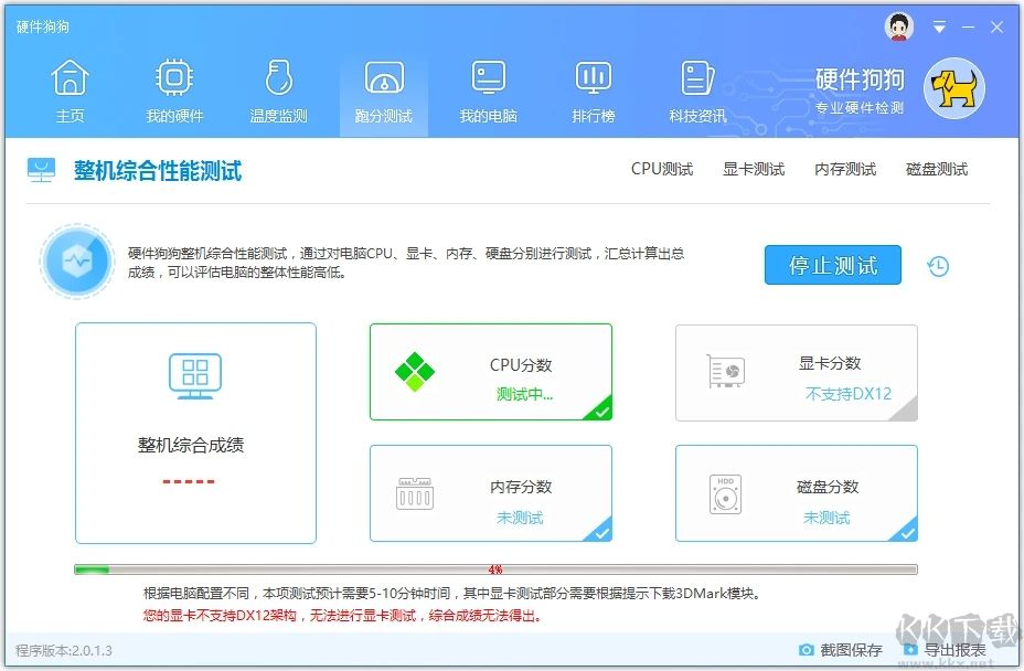 3、跑分測試:對整機(jī)或是單獨(dú)硬件進(jìn)行性能跑分,讓你更明了的知道自己電腦的性能;