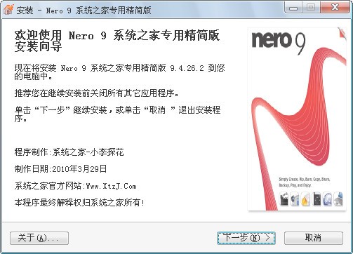 nero9中文免費版已經(jīng)完全激活。自帶VC++2005運行庫,安裝程序會自動為您安裝。在Windows7下測試通過,以及Win7下的虛擬XP環(huán)境測試通過。這次發(fā)布的nero9精簡版有點大,都將近40MB了,原因是保留了官方完整的“刻錄”功能,支持添加媒體文件后自動轉(zhuǎn)換功能,對刻錄VCD、SVCD、DVD視頻,甚至BD視頻等都提供了良好的支持。