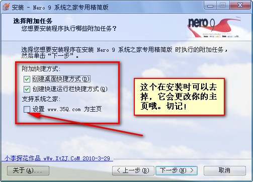 注意:安裝的時候有這個提示的時候,記得把這個設(shè)置主頁給勾掉,這樣對你的電腦就同有任何影響了!