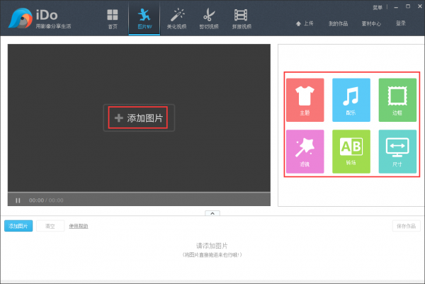 答:第一步:進(jìn)入“圖片MV”界面,點(diǎn)擊“添加圖片”按鈕;